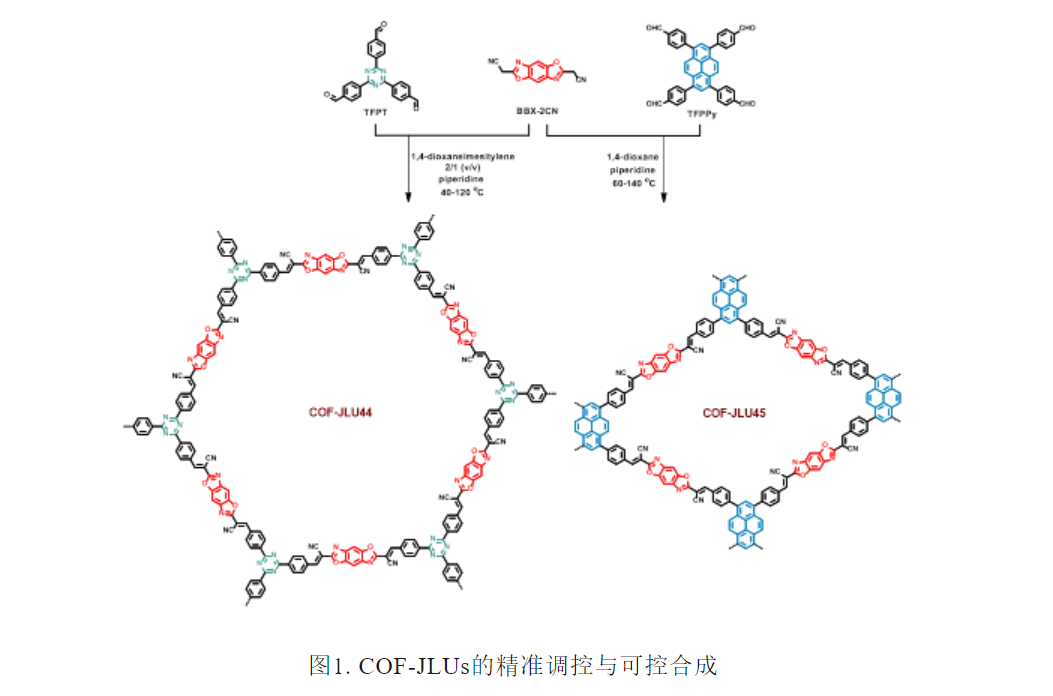 (3)供体-受体协同:COF-JLU45以芘单元为电子供体,苯并双恶唑与氰基为受体,形成强内建电场,促进激子解离。