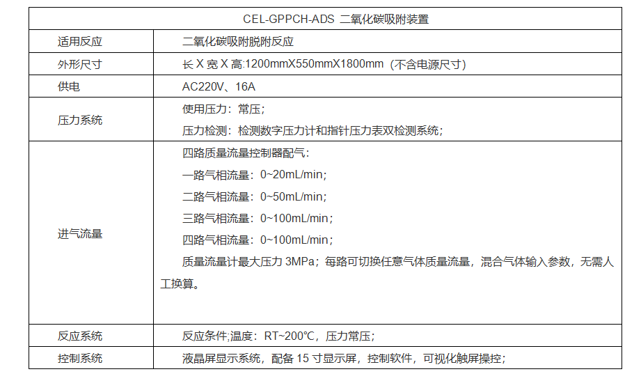 型号:CEL-GPPCH-ADS 二氧化碳吸附装置