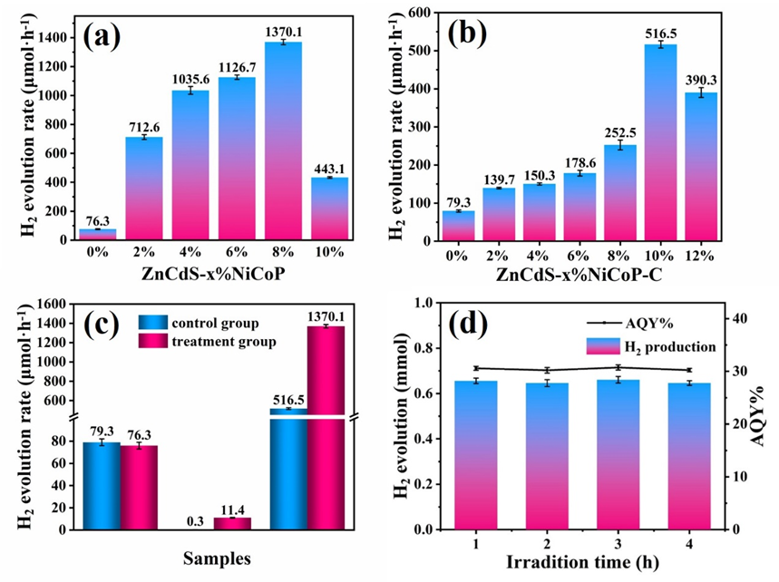 标题:Highly efficient photocatalytic hydrogen production by ZnCdS composite catalyst modified with NiCoP nanosheets prepared by LDH precursor