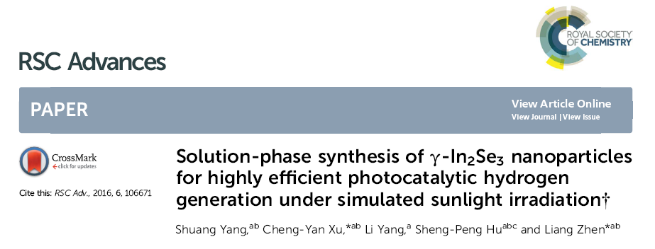 当前位置 : 首页 > 资讯动态 > 论文发表 > Solution-phase synthesis of g-In2Se3 nanoparticles for highly efficient photocatalytic hydrogen generation under simulated sunlight irradiation†