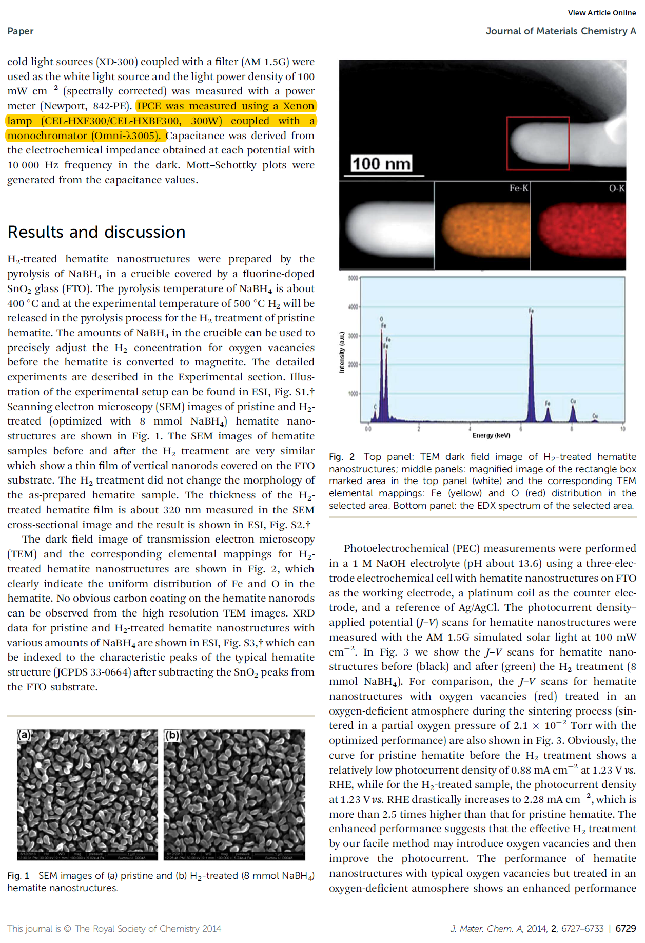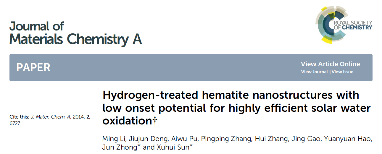 Hydrogen-treated hematite nanostructures with low onset potential for highly efficient solar water oxidation†