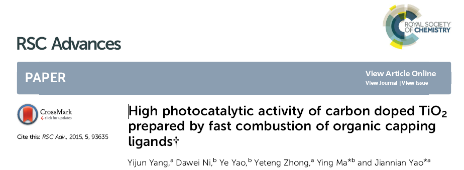 High photocatalytic activity of carbon doped TiO2 prepared by fast combustion of organic capping ligands†