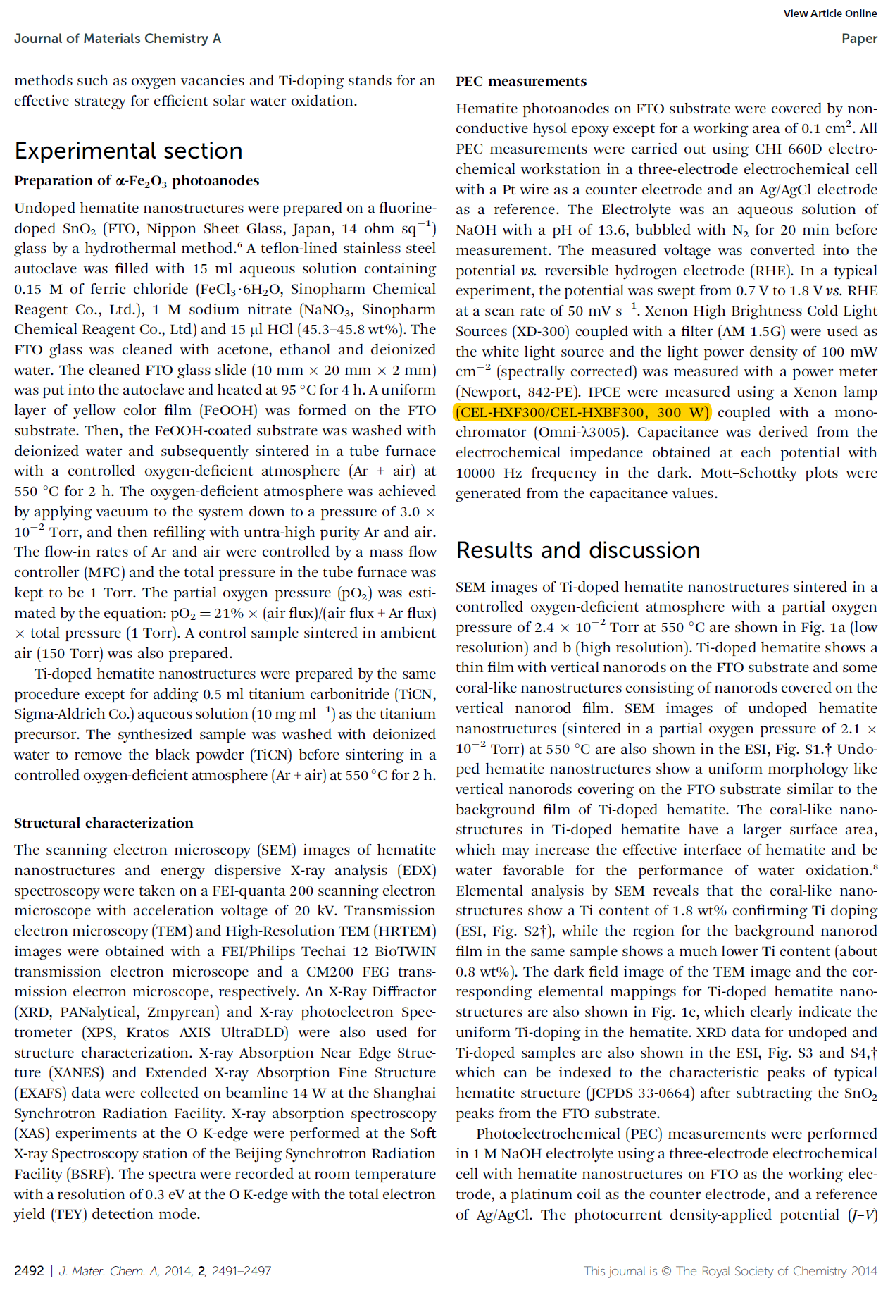 Coupling Ti-doping and oxygen vacancies in hematite nanostructures for solar water oxidation with high efficiency†