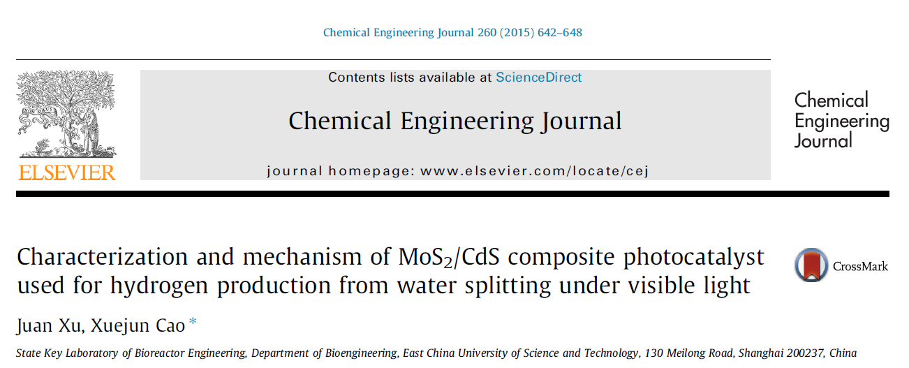 当前位置 : 首页 > 资讯动态 > 论文发表 > Characterization and mechanism of MoS2/CdS composite photocatalyst used for hydrogen production from water splitting under visible light