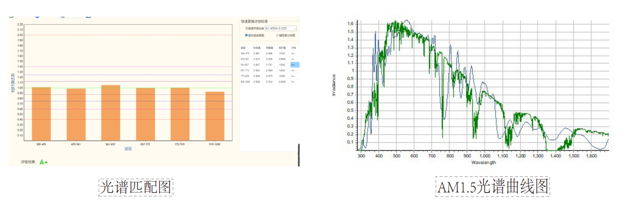 满足 JIS C8912 /C8933 Class A,IEC/EN.60904-9-2020 和 ASTM-E927-10. AAA 等级规范